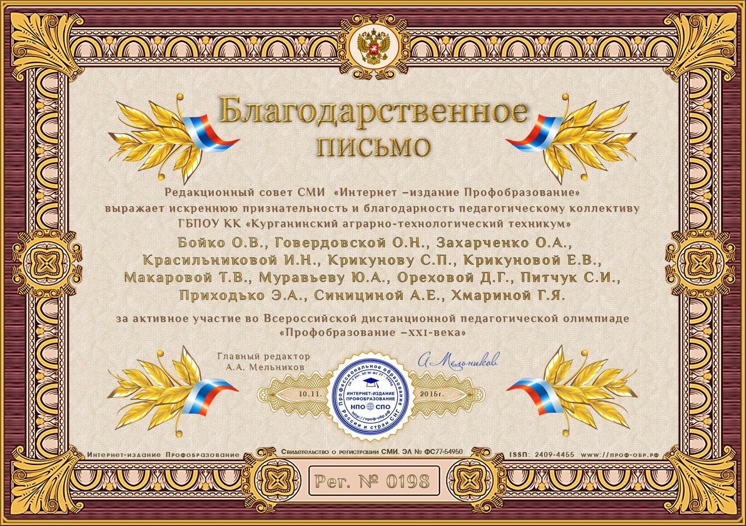 Наши педагоги участвовали во Всероссийской дистанционной педагогической олимпиаде для педагогов НПО и СПО «Профобразование 21 века».
