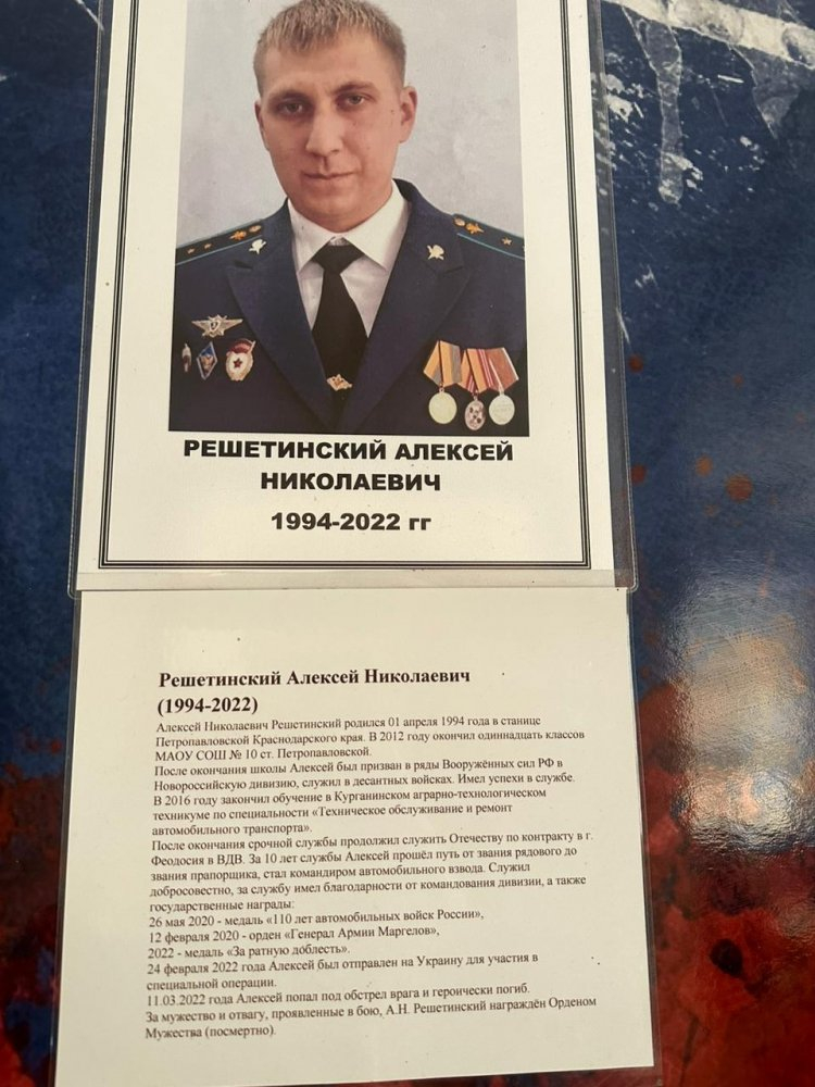 Нашему Герою, простому парню из станицы Петропавловской, Алексею Решетинскому